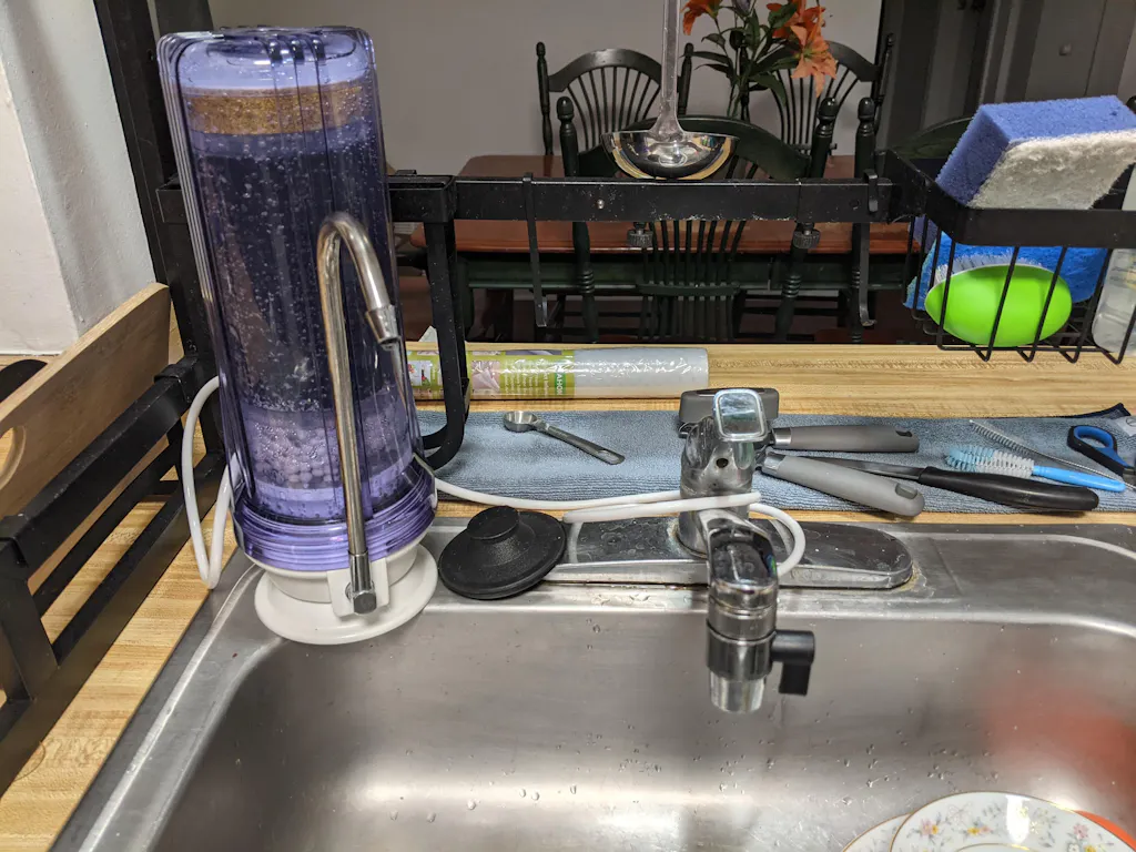 The best part: it’s super easy to install, use, and maintain. Unlike point of use filters that require drilling and mounting under your sink, this countertop filter runs straight off of any sink faucet. You just screw the filter’s faucet adapter to your faucet, run the water line from there to the filter (a single canister), and outcomes filtered, mineralized water out of the attached onboard faucet. When you need to use the sink to wash dishes or clean, simply unscrew the faucet adapter and use it as normal, then reattach it for drinking water.