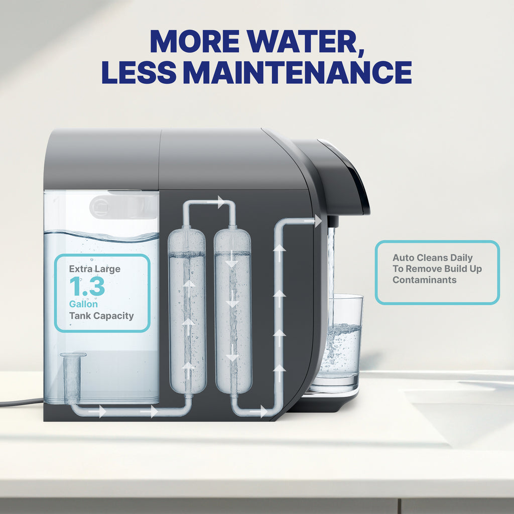 Simply plug it in and start enjoying purified water instantly—no drilling, plumbing, or professional setup required. When it’s time to change filters, the tool-free design and self-flushing feature make it simple and stress-free.