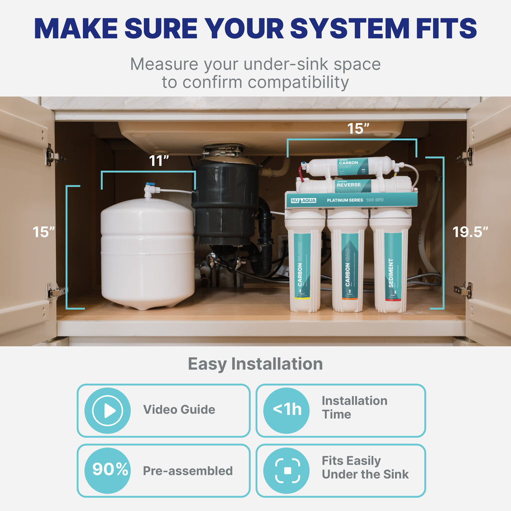 Installing our Platinum Series 100GPD 5-Stage Reverse Osmosis home filtration unit will supply all of your drinking water needs. Advances in technology have made home purification systems smaller, more effective, and more affordable.