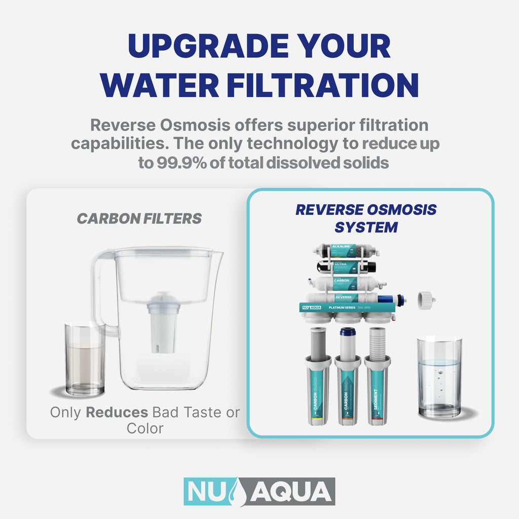 The NU Aqua Platinum Series Reverse Osmosis system is designed to provide a better-tasting water experience. With HydraCoil™ technology, the system provides up to 50% cleaner water than comparable systems, giving you a noticeable difference in the taste and quality of your drinking water.