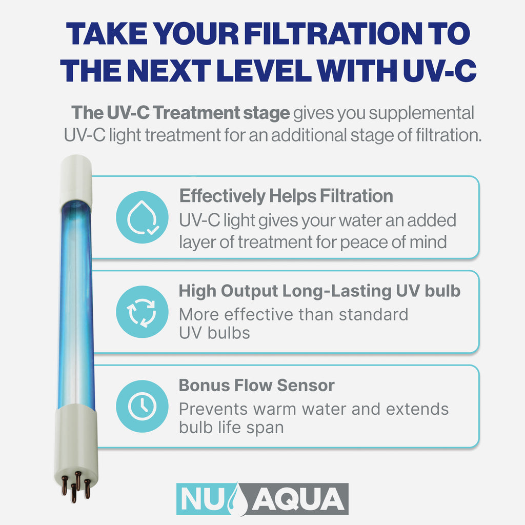 - Supplemental UV-C ultraviolet light treatment as an additional stage of filtration
